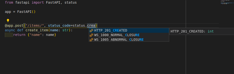 @app.post("/items/", status_code=status.HTTP_201_CREATED)